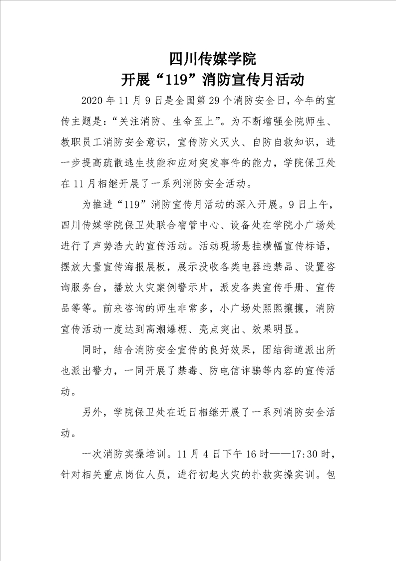 【法制教育】 四川传媒学院开展“119”消防宣传月活动