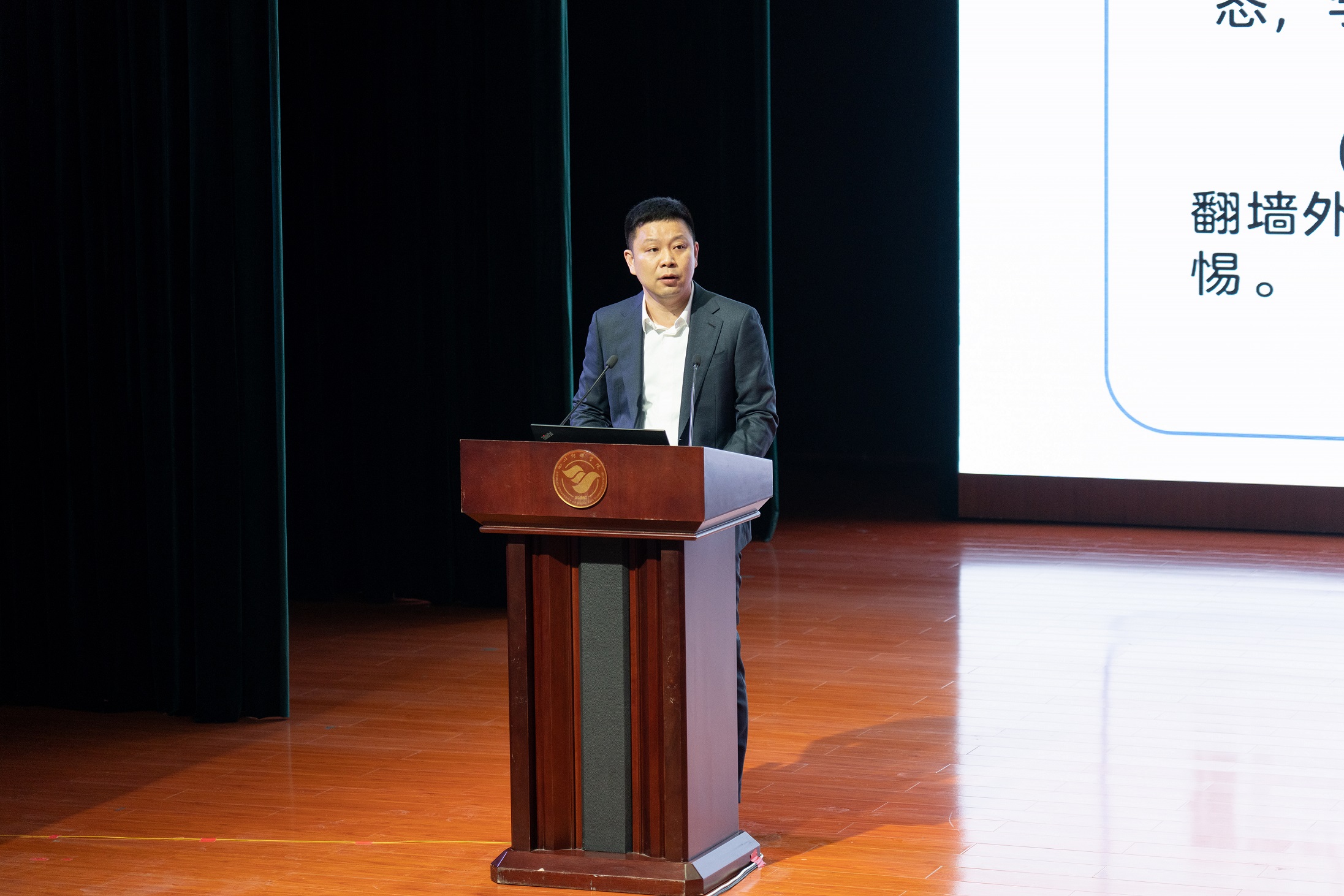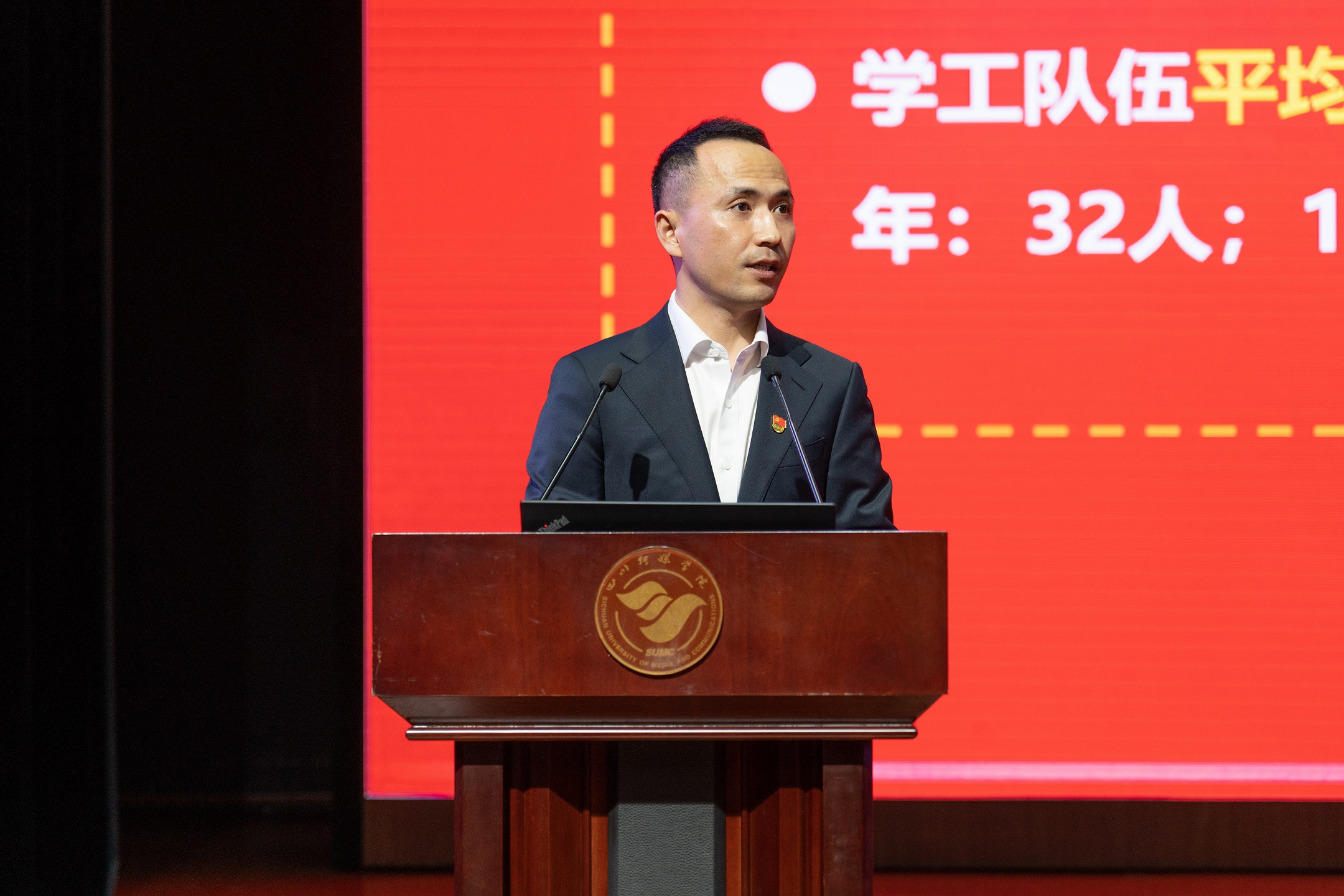 随后,校长张颖江教授在会上进行了发言,他表示,近年来,学校努力建设传媒特色鲜明的高水平应用型大学,取得了显著成效,办学定位进一步明确,发展目标进一步清晰;办学条件进一步优化,办学水平进一步提升;产教融合进一步夯实,特色办学进一步彰显;制度建设取得新进展,规范执行带来新气象。随后他强调,我们一定要认真学习党的二十大报告精神,贯彻落实到位,特别是要主动强化制度建设和落实,主动强化认识与行动的统一,主动强化科学方法的运用,主动强化学工队伍的建设。最后他说道,学校特别关注管理队伍的建设。因为教师队伍和实验队伍的水平代表着学校当下的水平,而管理队伍的水平决定着学校的未来。