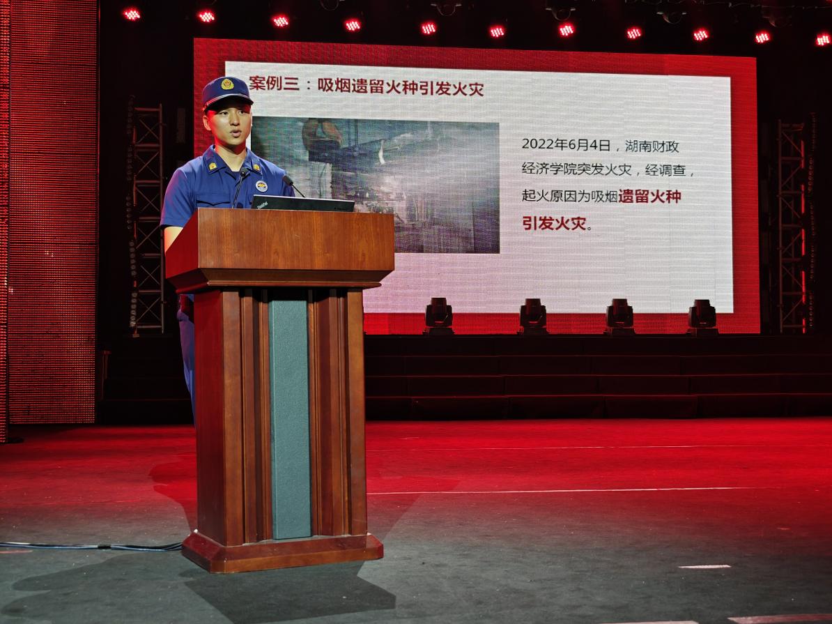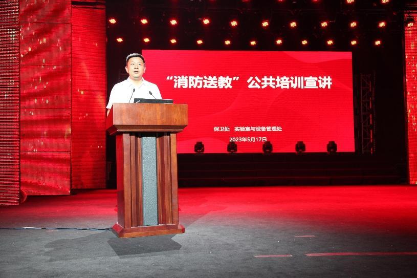 为配合学校开展好消防安全教育,切实为大运会创造良好的消防安全环境,2023年5月17日中午,保卫工作部(处)邀请郫都区消防救援大队团结消防站吴浩站长为全校广大师生员工及商家等,进行主题为“迎大运·保安全”的消防培训宣讲。