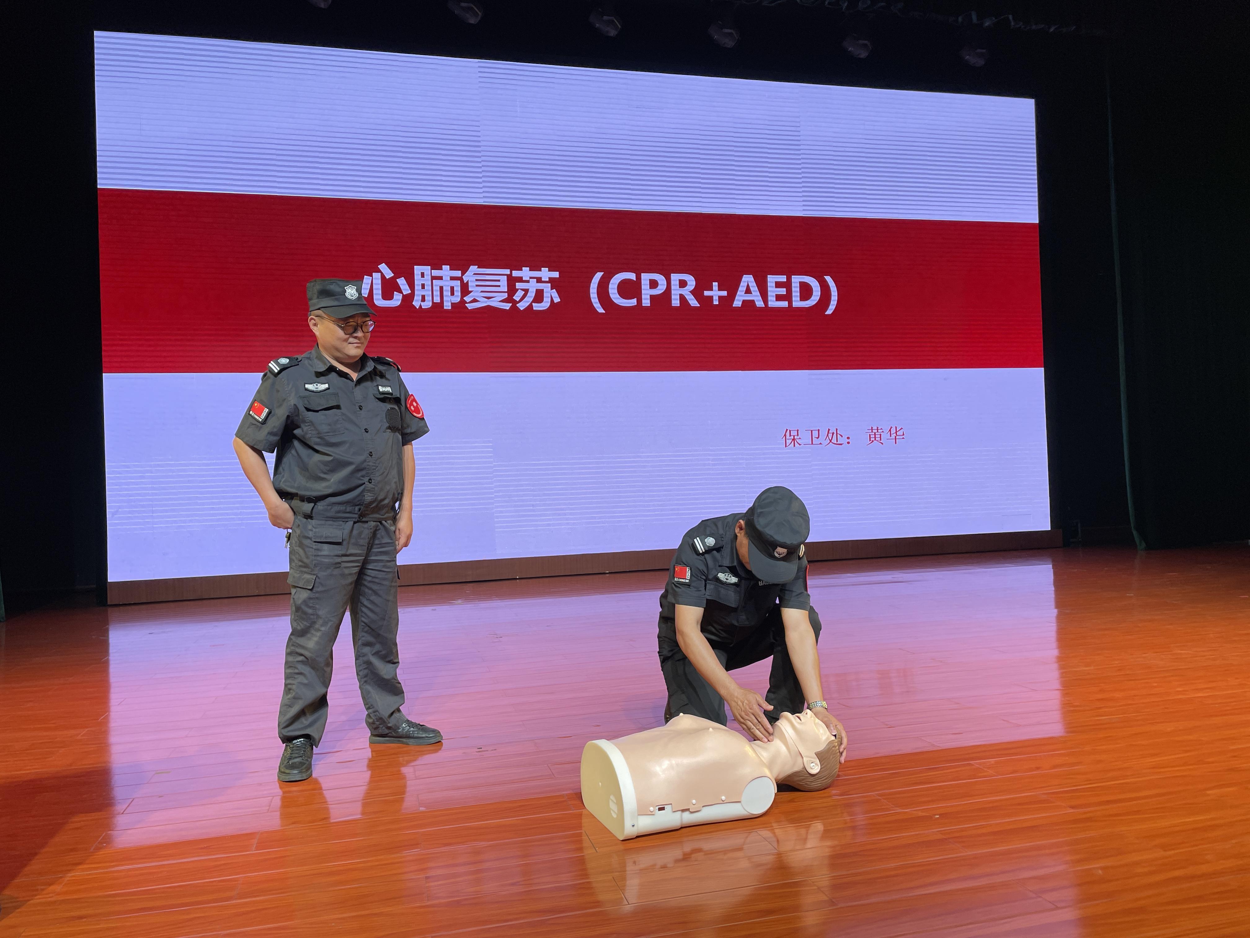 (保卫处黄华处长讲解心肺复苏操作流程)