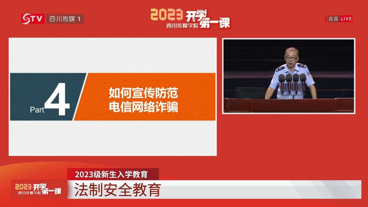 郫都区公安分局刑警大队副大队长何警官结合几起校园电信诈骗案例,深入浅出地向同学们介绍了“兼职刷单”、“返费”、“冒充淘宝客服人员”等新型的电信网络诈骗种类,针对如何识破并防范骗局进行了讲解,向同学们讲述了防范打击电信诈骗的相关法律法规,进一步警醒同学们不要参与电信诈骗。同时,何警官还从校园公共安全、网络舆情等几个问题对同学们进行了知识普及。