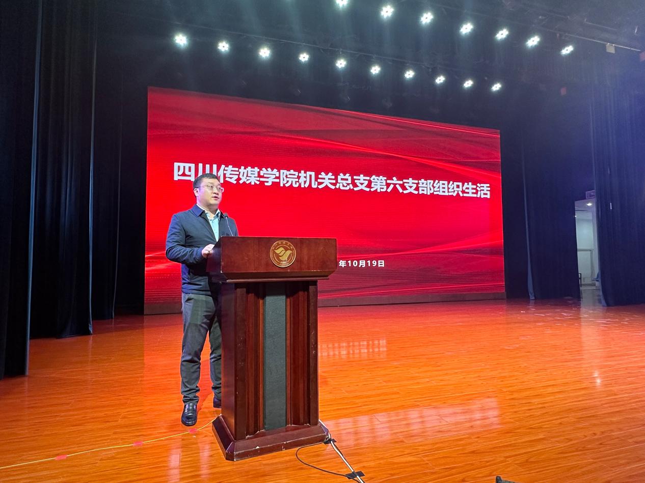 10月19日下午,中共四川传媒学院第六支部委员会在艺术交流中心开展10月集体党课学习,支部书记谢磊同志围绕《习近平新时代中国特色社会主义思想学习纲要(2023年版)》中《八、坚定不移全面从严治党》和《九、以新发展理念引领高质量发展》带领各位党员同志进行深入学习。
