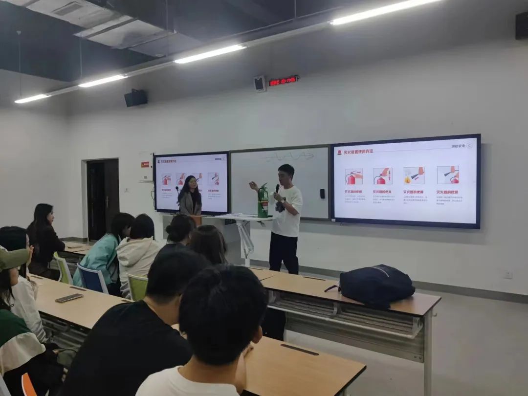 班会上,辅导员老师利用图片、视频、实物展示与体验等方式,向同学们介绍了“消防基础知识”“火灾如何扑救”“如何预防火灾”“火场如何逃生”等四方面内容,通过认真观看、仔细聆听和深刻感悟,学生们既了解了消防知识,又牢固树立了安全意识。为了了解学生们的自护自救方法掌握情况,各班还开展了激烈地问答活动,内容关于学生们熟悉的环境,家庭、校园、公共场所消防安全问题应对方法,大家积极踊跃发言,对答如流,极具条理性。