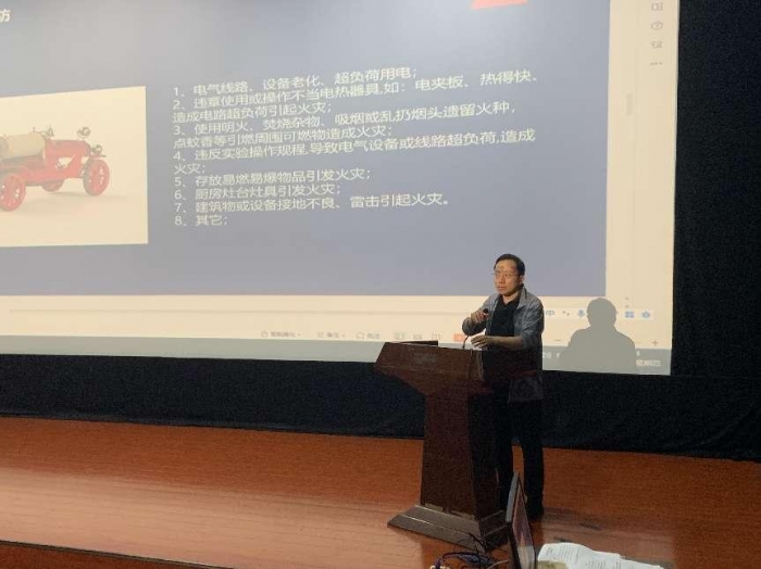 5月9日,保卫处消防科王亚飞科长为编导艺术学院师生员工就消防安全知识进行了培训。王科长以理论知识和实际案例相结合的方式围绕常见火灾种类及扑救方法、疏散逃生与自救互救等几个方面系统讲解了消防安全知识,为参训人员上了一堂生动的安全课。