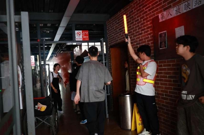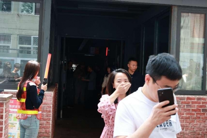疏散演练环节,随着消防警报声响起,消防疏散演练正式开始。开启消防广播,楼内各疏散口、楼梯口等重点区域的引导员迅速就位,师生员工捂住口鼻、弯腰低姿态沿疏散标识所示方向有序完成疏散。