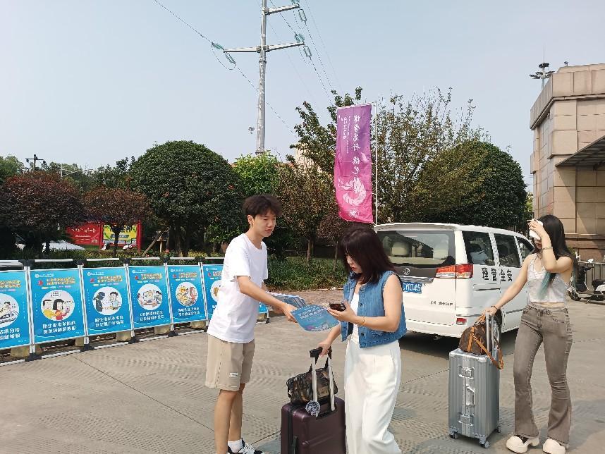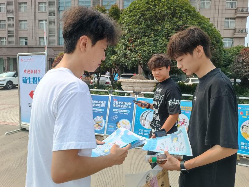 2024年8月29日,正值老生开学返校之时,学校保卫处迅速行动,精心组织开展了一场别开生面的反诈宣传活动。保卫处设置了线下宣传点,热情地向返校的学生们发放反诈传单,这份特殊的“开学礼”犹如一道坚固的防线,守护着同学们的财产安全。