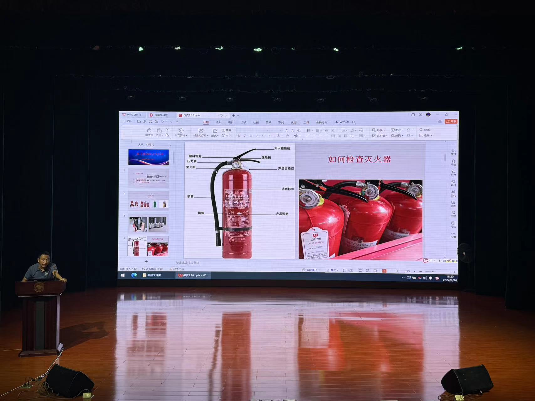 培训过程中,消防科王科长结合校园实际情况,详细讲解了火灾的预防、扑救方法以及消防器材的正确检查和使用。通过实际案例分析,让保安们深刻认识到消防安全的重要性。