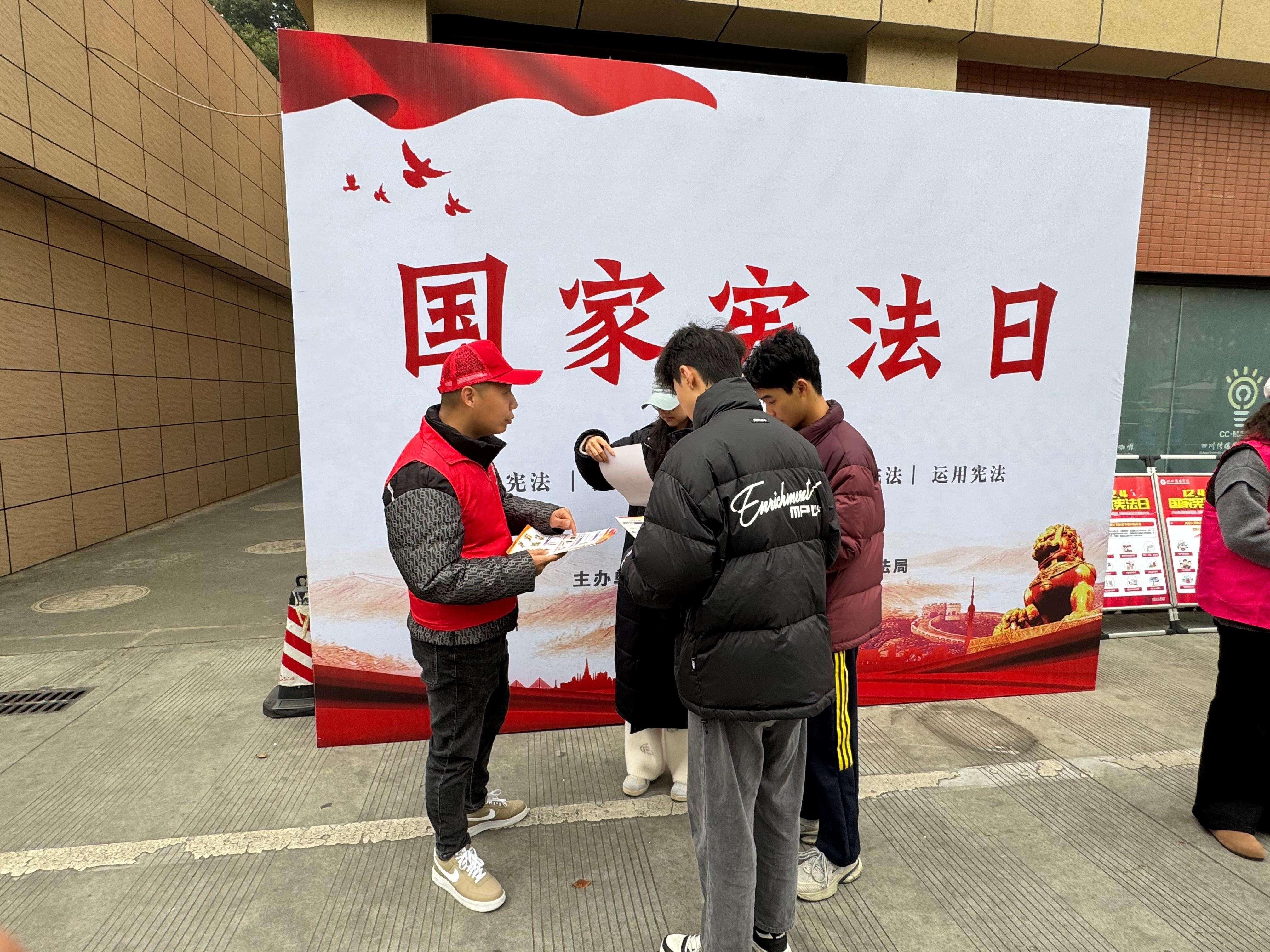今年12月4日是第11个国家宪法日,为弘扬宪法精神,增强广大师生的法治观念,保卫工作部联合郫都区司法局在校园内开展了国家宪法日宣传活动。