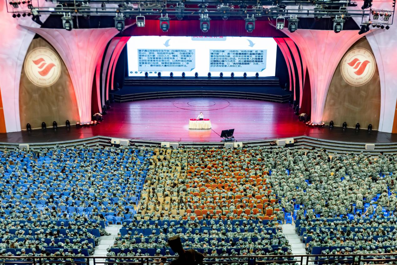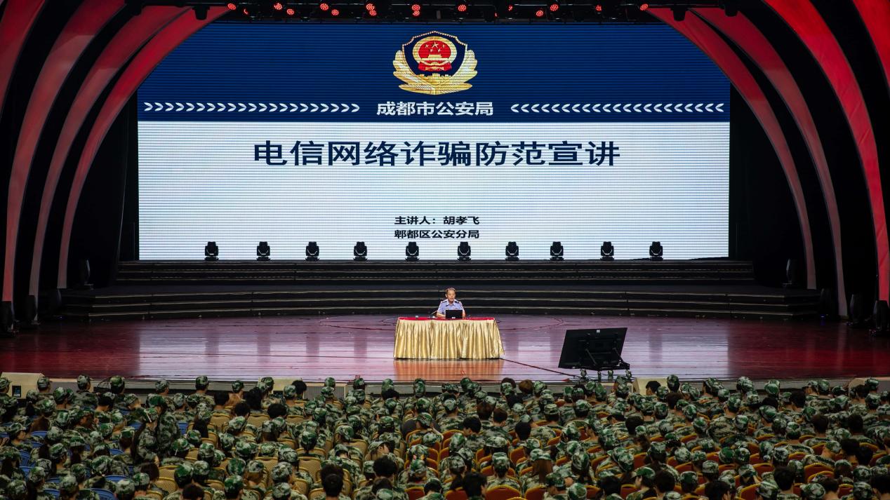 为切实提升2025级新生的反诈意识与自我保护能力,筑牢校园安全防线,9月4日上午10时,保卫工作部特邀郫都区公安分局团结派出所副所长胡孝飞,为全体2025级新生开展反诈安全教育专题讲座。