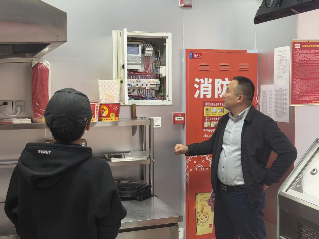 在双创街区,检查组细致检查商铺消防安全制度落实、消防器材配备维护情况,同时向商户宣传安全知识,强调定期自查,严禁违规堆放易燃易爆物品。