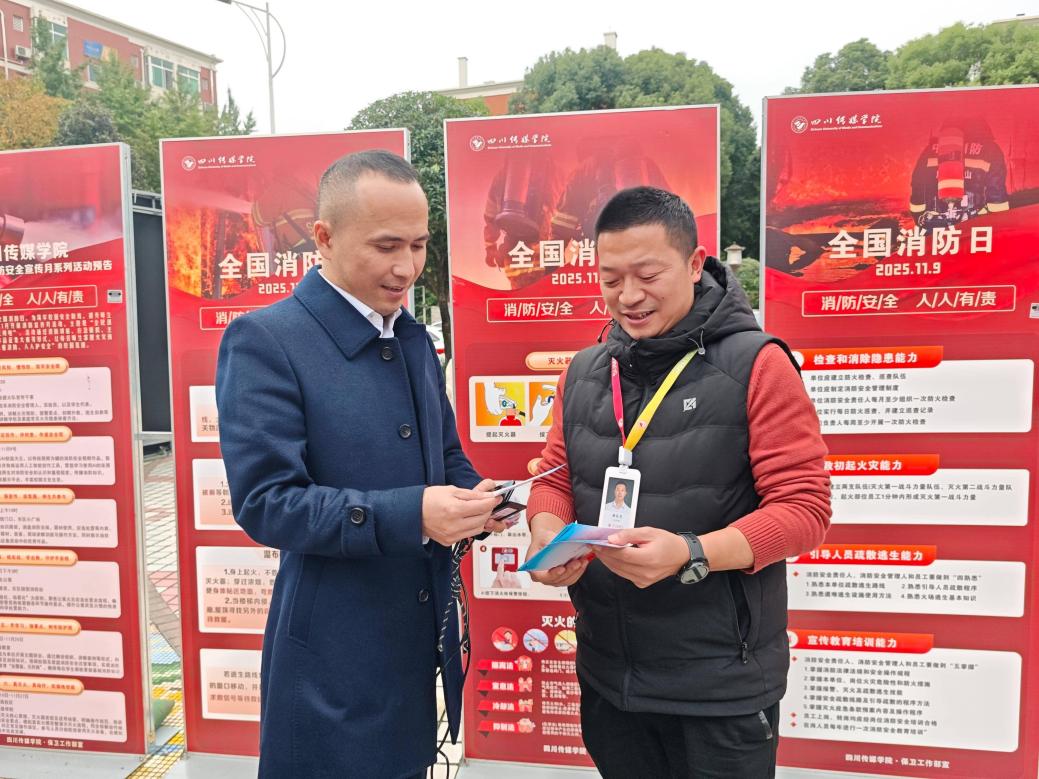 为进一步提升全校师生的消防安全意识和应急避险能力,扎实推进校园消防安全工作,2025年11月11日,保卫工作部分别在东校区小广场、西校区图书馆,同步开展2025年消防宣传月系列活动中的线下主题教育。活动通过沉浸式体验、实景化展示、成果化呈现等多元形式,让消防安全知识深入人心。