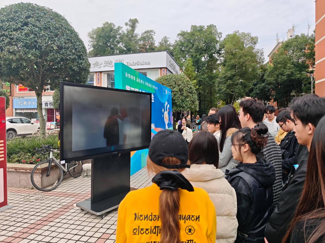 与此同时,另一展区的“2025年消防安全作品征集大赛成果展示”也吸引了众多师生驻足。现场通过电视滚动播放大赛一等奖、二等奖、三等奖获奖作品,这些作品均由我校师生自主创作,内容紧扣校园消防安全场景,既有对火灾隐患的警示,也有对消防知识的科普,兼具思想性与艺术性。充分展现了我校师生对校园消防安全的关注与支持,进一步营造了“人人学消防、人人懂消防”的良好氛围。