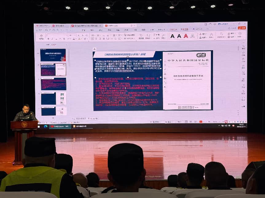 随后,王科长围绕消防通道规范设置、疏散标志安装标准、日常检查要点、隐患整改流程等内容开展专题业务培训。结合校园实际,对通道划线、净宽净高要求、疏散指示标志安装位置与亮度标准、应急照明测试、通道清障等关键环节进行详细讲解,明确日常巡查要点与台账记录规范,进一步提升全体人员消防安全业务能力与实操水平。